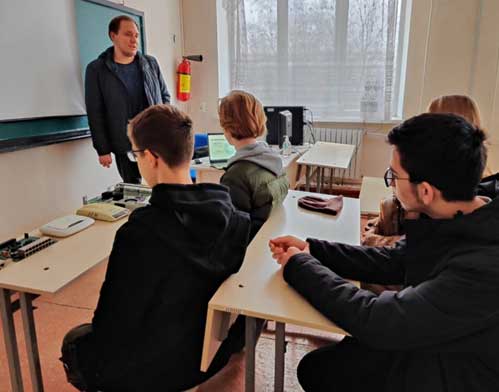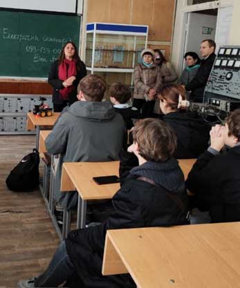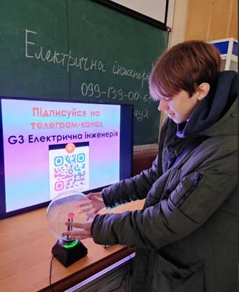 Екскурсійний шлях включив також подорож до лабораторії спеціальності «Електроенергетика, електротехніка та електромеханіка». Голова ПЦК Електротехніки та електротехнологій Соловйов Д.С. розкрив секрети учням, як студенти готуються до дипломного проекту.