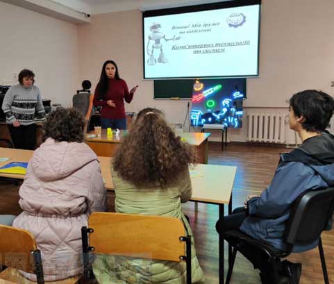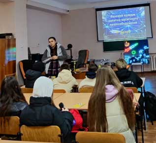 Тетяна Мандрика, викладачка циклової комісії програмної інженерії, завідувачка підготовчого відділення запросила учасників зустрічі на навчання на підготовчі курси коледжу, презентувала спеціальність F2 Інженерія програмного забезпечення ‒ освоєння студентами методів і технологій створення високорівневих програмних продуктів, з використанням об’єктно-орієнтованих принципів проєктування і програмування С++, Java, Python, залучення студентів до співпраці з ІТ-компаніями під час навчання.