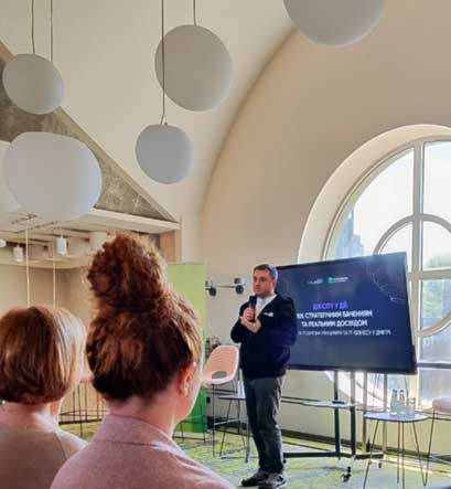 Ірина Шмідт презентувала студентам гру «Побудуй місто за Scrum». Scrum є одним з найбільш популярних фреймворків управління проєктами в сфері розробки програмного забезпечення.