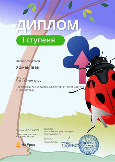 - технологічне відділення, викладачі Манжелей М.В., Довганюк М.Г.;