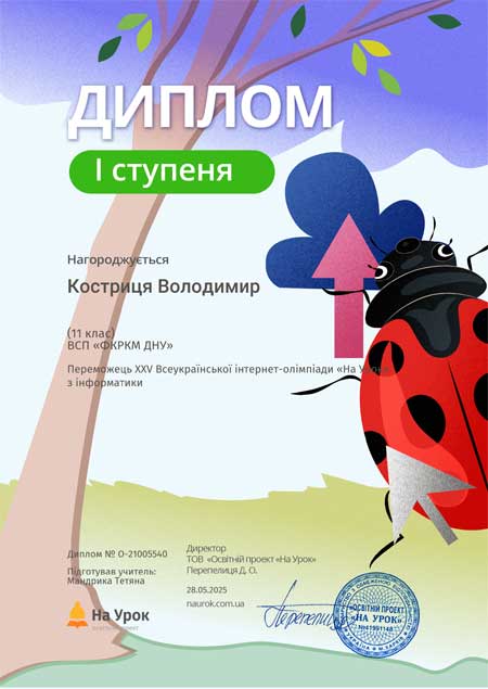 Друге місце - ст.гр.КС-17-2 Забуга Богдан.