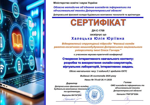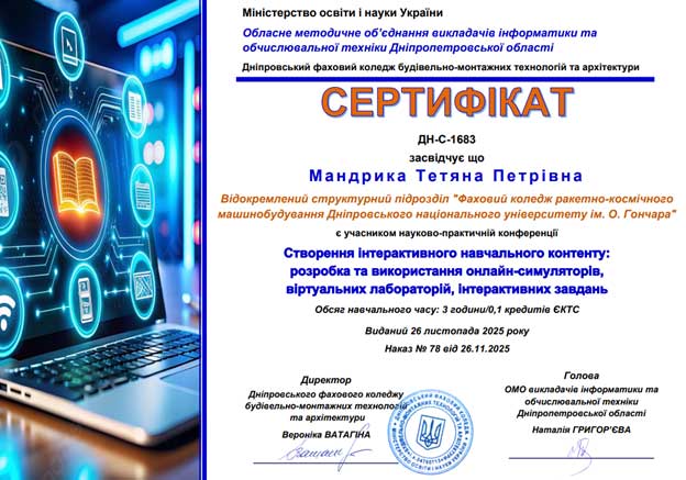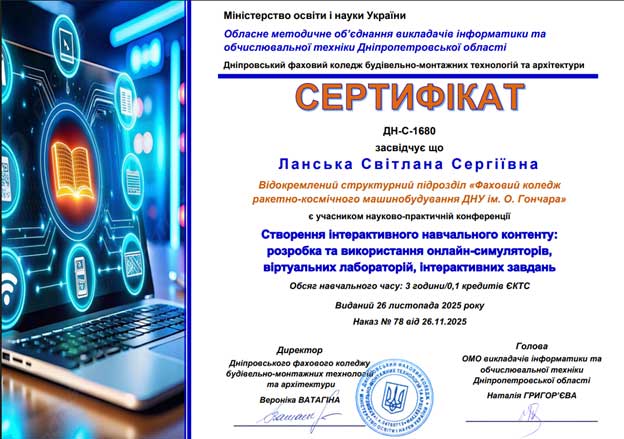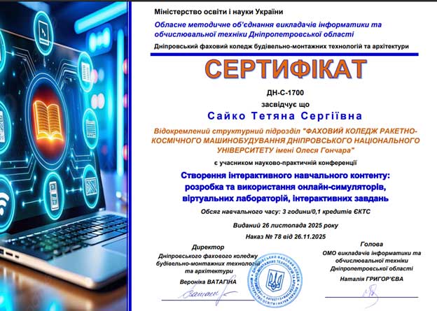 26 листопада 2025 року в онлайн-режимі відбулося обласне методичне об’єднання викладачів інформатики і комп’ютерних технологій закладів фахової передвищої освіти Дніпропетровської області.