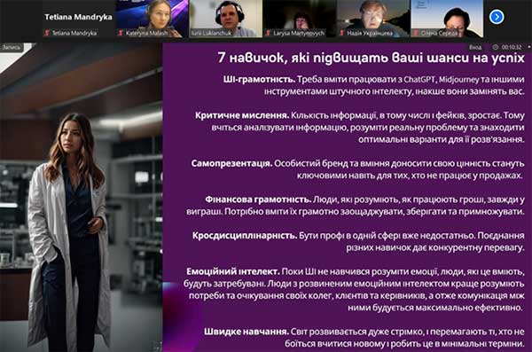 Юрій Лук’янчук ацентував увагу на рекомендації держави щодо використання ШІ, базові навички цифрової безпеки, як ШІ бачить нас і які дані збирає, приклади використання ШІ зловмисниками, як захистити себе та студентів у нових умовах.