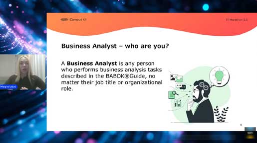Учасники марофону дізналися важливі організаційні моменти та про бізнес-аналіз, роль бізнес-аналітика в команді, життєвий цикл програмного забезпечення, найпоширеніші методології розробки.
