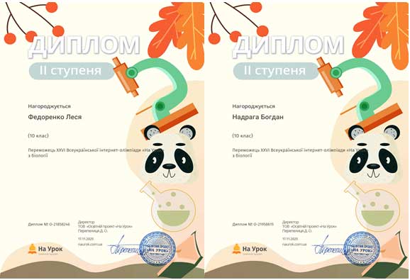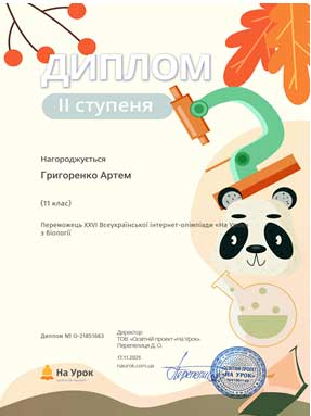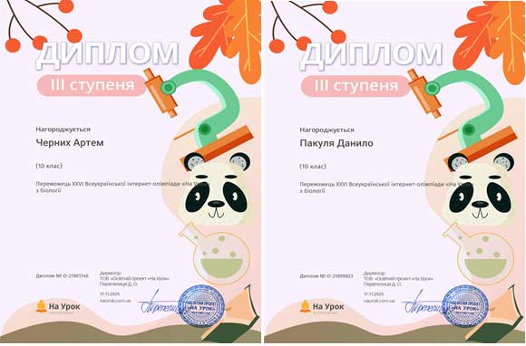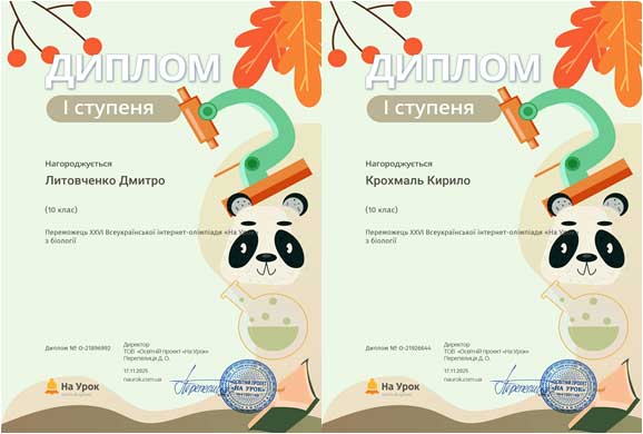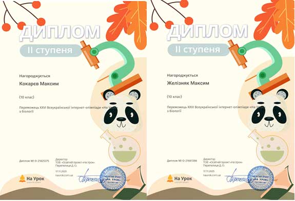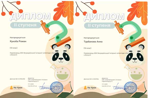 Студенти І курсу груп ЕП-25-1, ПЗ-25-1 та ПЗ-25-2 прийняли участь в XXVІ Всеукраїнській інтернет-олімпіаді «На Урок» з біології і здобули 4 дипломи першого ступеня, 7 дипломів ІІ ступеня та 2 дипломи ІІІ ступеня. Відповідальний за проведення олімпіади викладач Гуменюк Л.М.